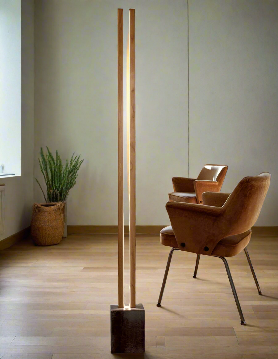 Modern Minimalist Wooden Floor Lamp with Dual Light Design | Elegant Wooden Floor Lamp with Minimalist Dual-Light Design for Modern Interiors