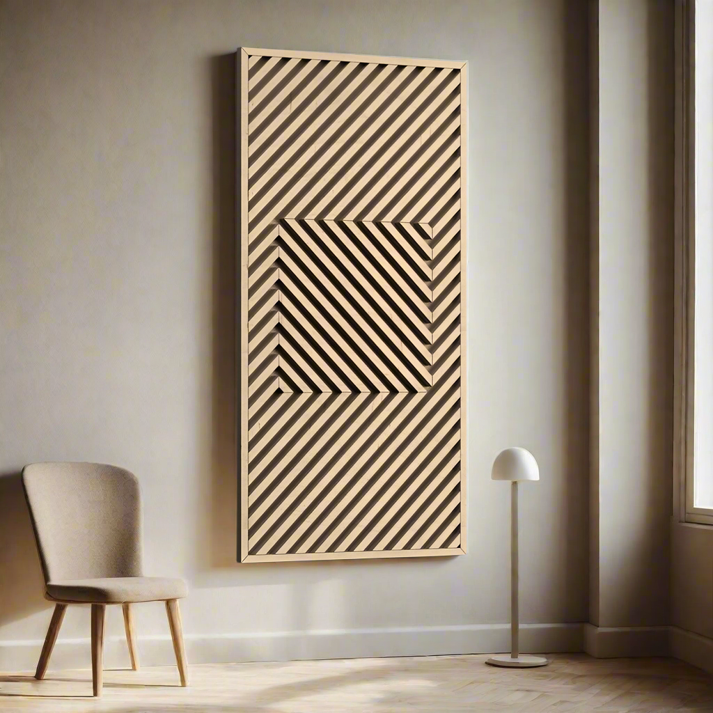 Product Description: Elevate your home decor with this stunning geometric wall art. Crafted from high-quality wood, this modern and minimalist panel features intricate diagonal lines that create a captivating 3D illusion. The natural wood finish adds warmth and sophistication, making it a perfect addition to living rooms, offices, or any space needing a contemporary statement piece. Ideal for those seeking timeless, functional art that complements a mid-century or Scandinavian interior design aesthetic. This Premium wall art is a must have as it bears the quality and detailing of one of the most reputed brand squaro™.